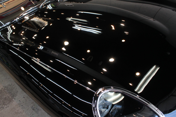 お車は、当然ガレージ保管でずっと大切にされていたためシミなどの類いはほとんどなく、きれいな状態ではありましたが、大事にされているが故の洗車傷や磨き傷がありました。また、再塗装を施されている部分もありますから、パネルごとにしっかりと塗装の状態を見極めながら慎重に下地処理を進めます。