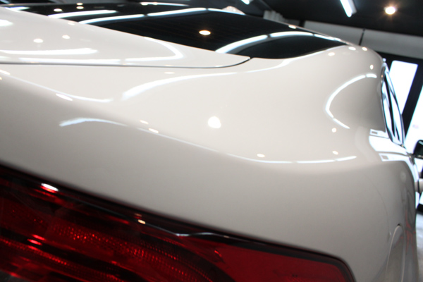 仕上がったM様のXFは、明らかにガラスの膜厚を感じられる透明な輝きを放ち、ハイパフォーマンスサルーンにふさわしい高級陶磁器のような美しさとなりました。