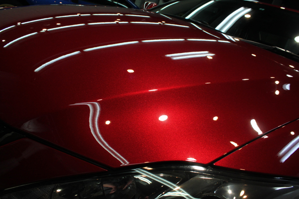 それから下地処理で傷やシミを処理しながら塗装面を磨き上げ、最高の状態に持って行きます。磨き上げると言いましてもラディアスの下地処理は、あくまで塗装に優しい繊細な磨きを行いますから、削って塗膜を薄くしてしまうようなことはありません。ハードな研磨で薄くなってしまった塗膜は元には戻りません。コーテイングの際の下地処理は、塗装の持つ美しさを最大限に引き出すことが目的であるということを忘れてはいけません。