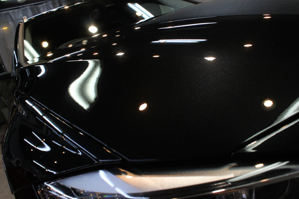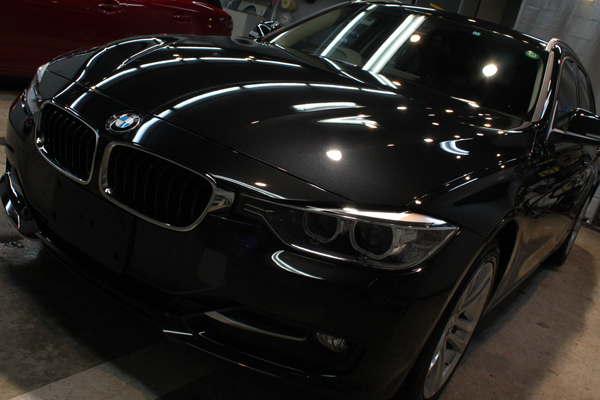 幸いお選びいただきましたリボルト・プロは、下地処理を行ってベストの状態にしてから完全硬化型のガラス被膜を形成するラディアス最高峰のガラスコーティングです。BMWのブラックサファイアの特性に合わせた下地処理でやさしく磨き上げ「新車の塗装のボケ」を取り去りますと、クッキリと透明感がまして本来の色ツヤとなりました。