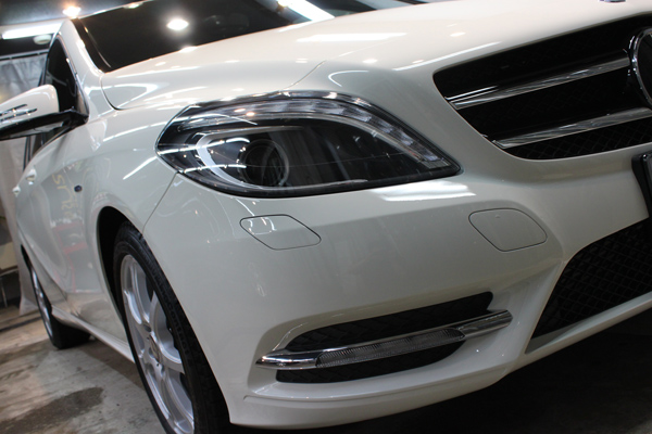 こちらS様のB180もソリッドホワイトならではの透明で柔らかな光沢をたたえ、特徴的なドアパネルのラインもくっきり美しい仕上がりとなりました。