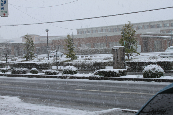 昨日の夕方から降り始めた雨が、今朝は雪になっていました。