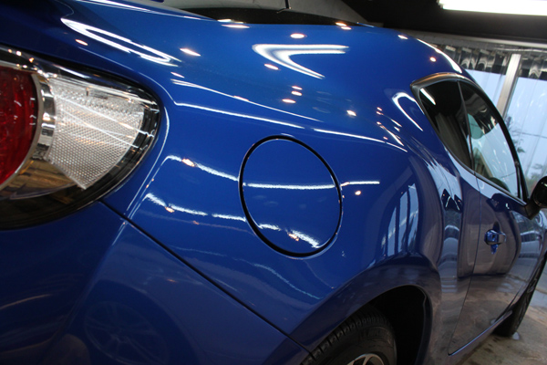 スバルの塗装にベストな下地処理とリボルト・プロの低分子硬化型ガラス被膜によって、色の鮮やかさ、深み、透明感が格段にアップしました。