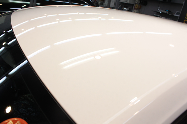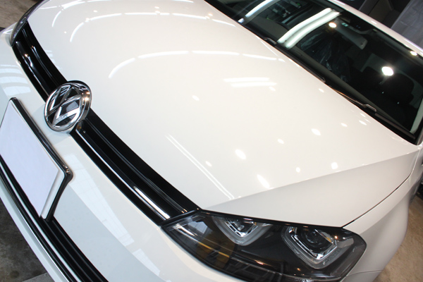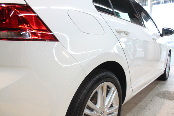 そんな訳で、お車の状態は、とてもきれいな状態にありましたが、輸入車の新車にありがちな鉄粉、水シミ、小傷があり、オーナー様ご自身のお手入れだけではどうにもならないものが多くありました。グリース汚れなどを除去し、隅々までクリーニングしてからゴルフの塗装に最適な下地処理で塗装面を整え、リボルト・プロのガラス被膜を形成いたしました。