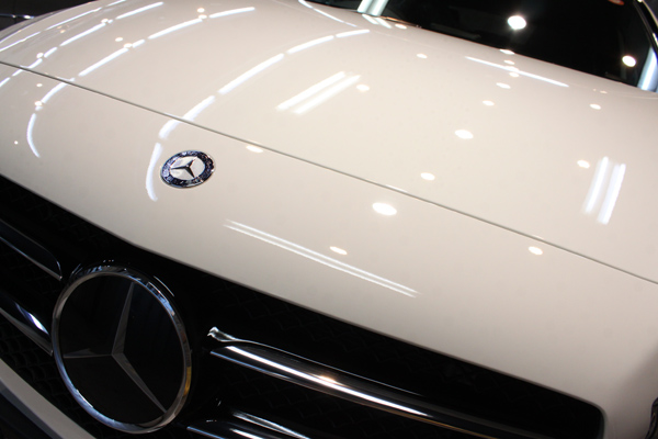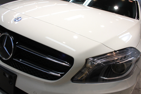 新車でありましても塗装の状態は万全ではありません。こちらのA180も一見きれいに見えましたが、余計なワックス分を完全に落としきってから、高輝度専用照明下でチェックいたしますとやはりたくさんの小傷が現れました。