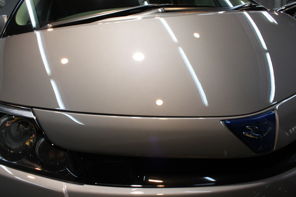前回の施工は、ブラック(202)で傷やシミも多めでしたが、今回はアイスチタニウムマイカメタリックの新車ですので、当然、下地処理で使用する機材もケミカルも技法も変えて下地処理を行いました。塗装の美しさを最大に引きだすという下地処理の目的は同じですが、それを確実に達成するためには、塗装の状態や特性に合わせた下地処理が非常に重要です。いかにして塗装に負担をかけずに美しく仕上げるか。今後も努力を続けて参りたいと思います。