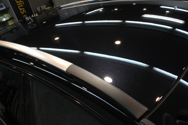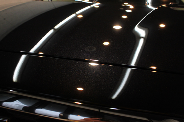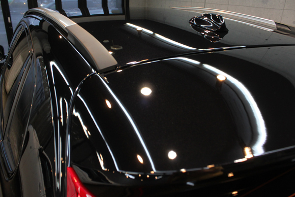 お車は、納車されて間もないこともあり状態は良好でしたが、高輝度専用照明下での下地処理で僅かな小傷やシミも見逃すことなく処理し、塗装本来の美しさをしっかりと引きだして、低分子硬化型ガラス被膜のリボルト・プロで仕上げさせていただきました。