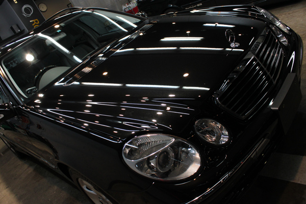 ケミカルで大方のシミを除去した後、研磨作業に進み、傷や進行したシミで荒れてしまった塗装面を「塗膜を削る」従来型の技法ではない、新たに開発した欧州車の塗装に最適な独自の下地処理によって滑らかに仕上げ、シミ、傷を除去するだけではなく、メルセデスの塗装本来の美しさをしっかり引き出しました。