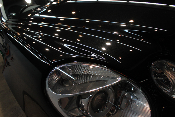 下地処理によって本来の姿となったオプシディアンブラックは、無溶剤、濃度100%の「New リボルト・プロ」のガラス被膜を形成させることによって、透明な被膜感たっぷりの仕上がりとなりました。