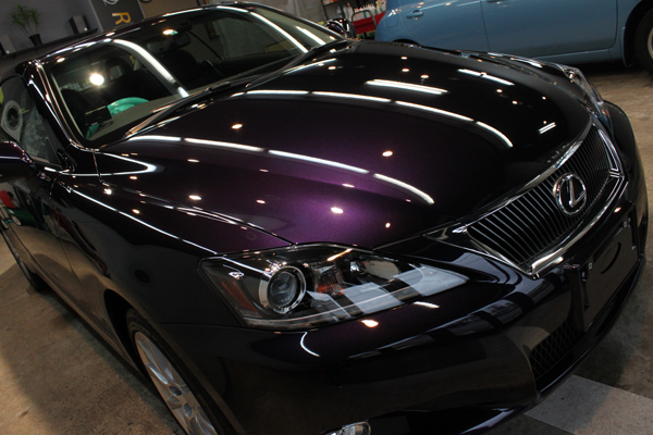オーナー様は、今年の初めにこちらのIS250Cを新車でご購入され、コーティングもされておりましたが、レクサスの塗装の美しさをさらに引き出そうと、改めてクオリティの高いコーティングを探しておられ、ご友人のレクサスCTが、弊社でコーティングなさったこともあってご入庫下さいました。