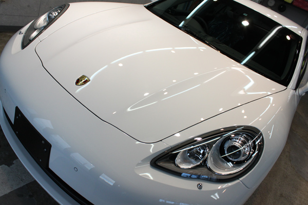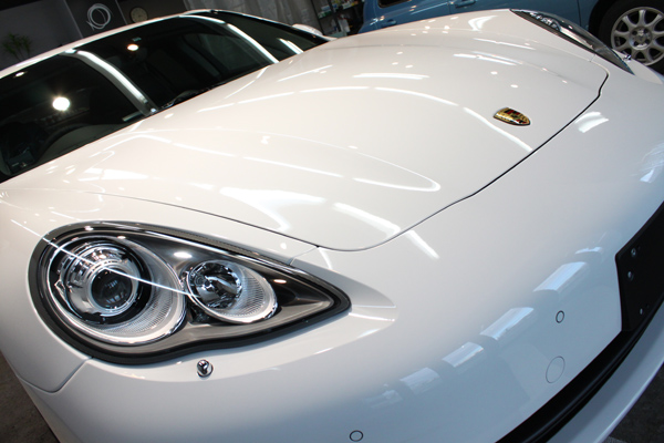 この独自の下地処理技術は、新車の塗装の「質感」も変わることがありませんし、何と言っても仕上がりの美しさが違います。これにより、ポルシェのキャララホワイト本来の美しさをしっかりと引き出すことができました。