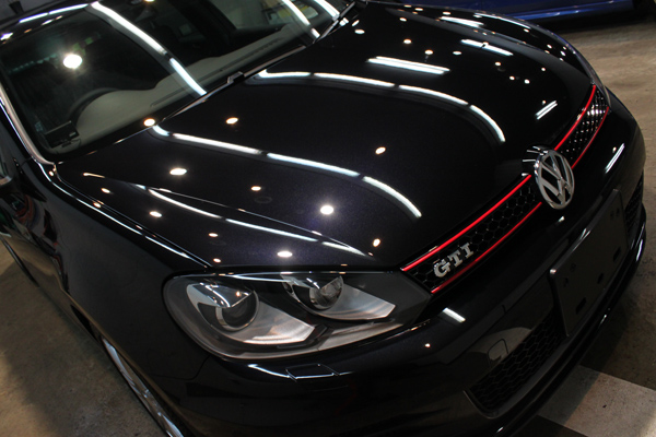 今回施工させていただきましたゴルフ6GTIにつきましても、ガラスコーティング施工の両輪である「下地処理」と「被膜形成」が、高次元で達成されたことによって、シャープなプレスラインとRの組み合わせによる無駄のないパネル構成の美しさを、最大限に引き出すことができたと自負致しております。