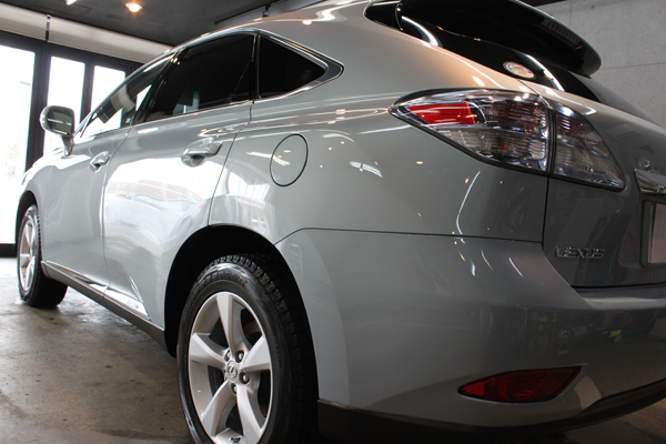 今回ご入庫いただきましたのは、奥様がお乗りのレクサスRX450hで、シルバリーグレーメタリックという落ち着いたシックなカラーです。