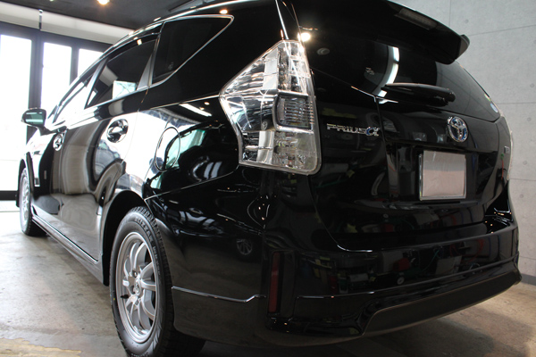 こちらのプリウスαのオーナーO様には、吸い込まれるほどの美しさとなった「202ブラック」の仕上がりを大変お喜びいただくことができました。