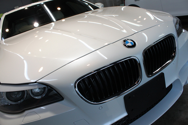 下地処理では、BMWの塗装特有の肌と特性に合わせた技法で丹念に磨き上げ、塗装本来の美しさを引き出して行きます。丹念といいましても、旧態然とした圧力をかけて塗装に負担をかける削る磨きではなく、塗装肌のうねりにも対応した繊細な磨きです。